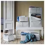 Коллекция ХЕММАФИКСАРЕ — прочные штабелируемые текстильные коробки разных размеров, которое помогут вам эффективно использовать каждый сантиметр пространства гардероба, чтобы организовать хранение одежды, обуви и гаджетов.