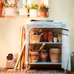 На этот стеллаж можно поставить растения в кашпо, а прозрачный чехол ХИЛЛИС превратит его в компактную теплицу.