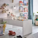 А когда приходит время заканчивать игру или занятие, игрушки и аксессуары для творчества исчезнут в ящиках.