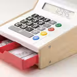 Игра в магазин — это весело и познавательно, особенно когда ребенок может складывать и подсчитывать итог на кассовом аппарате.