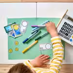 В комплекте прилагаются игрушечные деньги и две кредитные карты, которые ребенок может самостоятельно вырезать и раскрасить в свои любимые цвета.