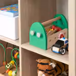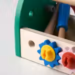 В этом ящике с игрушечными инструментами собраны разноцветные предметы, которые пробуждают воображение и помогают малышу развивать моторные навыки.