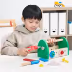 Этот красочный ящик с инструментами помогает ребенку развивать фантазию, играть, познавать мир и открывать для себя что-то новое, а также совершенствовать моторные навыки.