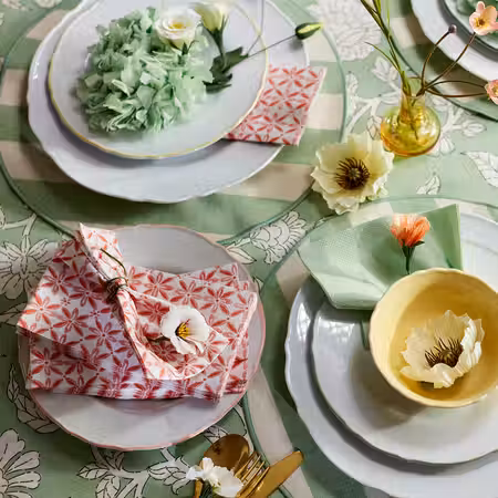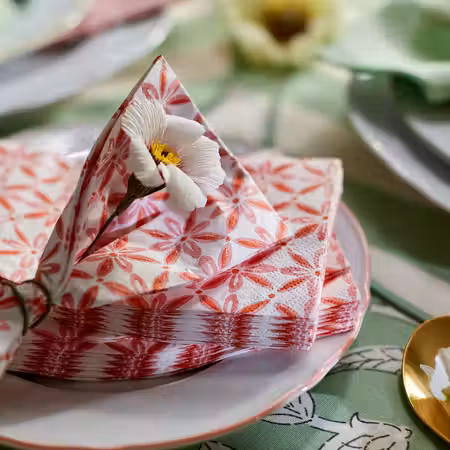 Дополните весеннюю сервировку стола декоративными салфетками с розовым цветочным узором.