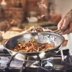 Нержавеющая сталь высокого качества и прочное металлизированное покрытие внутренней поверхности делают сковороду очень прочной и пригодной для ежедневного использования.