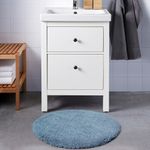 Микрофибра — очень мягкий материал, прекрасно впитывает влагу и быстро высыхает. Есть разных цветов, которые будут гармонично смотреться с другими аксессуарами для ванной. Легко содержать в чистоте, так как можно стирать в машине.