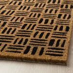 Придверный коврик BETALVÄG из кокосового волокна украшен эффектным геометрическим узором чёрного цвета, который придаёт прочному натуральному материалу современный вид.