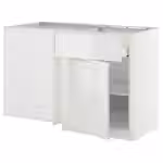 Используйте прилагающуюся белую планку, если Вы размещаете модуль с ящиками под прямым углом к угловому шкафу. Планка может быть прикрыта накладной панелью, чтобы соответствовать дверцам кухонных шкафов.