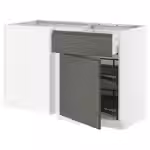 Используйте прилагающуюся белую планку, если Вы размещаете модуль с ящиками под прямым углом к угловому шкафу. Планка может быть прикрыта накладной панелью, чтобы соответствовать дверцам кухонных шкафов.