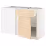 Используйте прилагающуюся белую планку, если Вы размещаете модуль с ящиками под прямым углом к угловому шкафу. Планка может быть прикрыта накладной панелью, чтобы соответствовать дверцам кухонных шкафов.