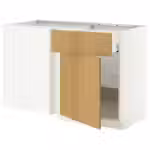 Используйте прилагающуюся белую планку, если Вы размещаете модуль с ящиками под прямым углом к угловому шкафу. Планка может быть прикрыта накладной панелью, чтобы соответствовать дверцам кухонных шкафов.