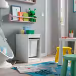 Расположите модули для хранения на удобной для ребенка высоте, и он сможет самостоятельно достать нужную вещь и навести порядок.