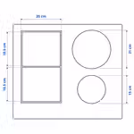 Левая передняя конфорка: 18,5x 20 см — 1750 Вт, ускоритель 2200 Вт.