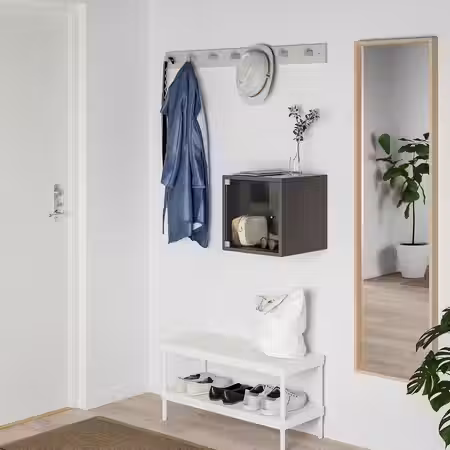Поперечная платяная штанга позволяет удобно развесить одежду в неглубоком гардеробе.