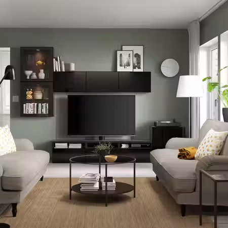 Тумба для телевизора БЕСТО может использоваться для телевизора и всех необходимых гаджетов.