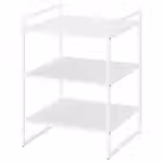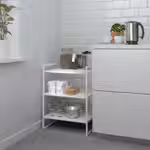Стеллаж изготовлен из стали с порошковым покрытием, что обеспечивает прочность, простоту в уходе и защиту от ржавчины.