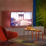Светодиодная подсветка сгибается, поэтому ее можно разместить за телевизором или стеллажом.