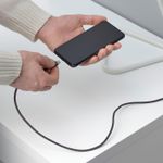 Длина этого кабеля — 1,5 м, что немного длиннее, чем обычные кабели, которые поставляются в комплекте с телефоном. Вот почему его будет удобно использовать в поезде или кафе.