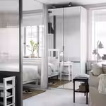 С помощью раздвижных дверей СКЮТТА вы сможете доработать имеющееся у вас решение для хранения, создать гардеробную или разделить комнату на две части.