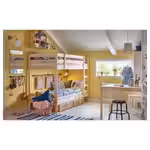 Дети обожают двухъярусные кровати. Поэтому у нас есть строгие требования к конструкции. Мы также тщательно тестируем такие кровати, чтобы убедиться в их прочности и безопасности. Например, мы предусмотрели специальные бортики, чтобы ребенок не упал во сне. Забраться на второй ярус можно только с одной стороны, что позволяет снизить риск падения. Кроме того, между ступеньками одинаковое расстояние, чтобы детям было проще спускаться и подниматься. На верхней кровати не должны спать дети до 6 лет.