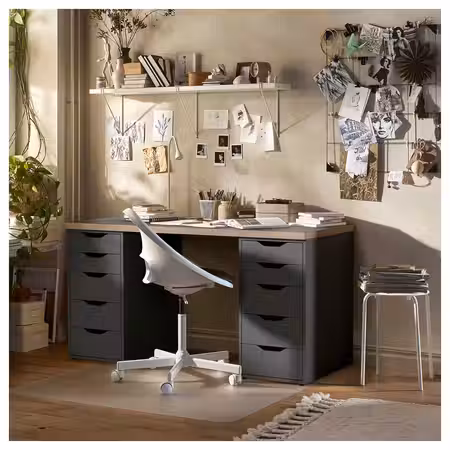 Ограниченное пространство не означает, что вам придется отказаться от учебы или работы из дома. Этот стол занимает мало места на полу, но при этом укомплектован тумбой с ящиками, в которых можно хранить бумаги и другие важные
