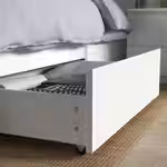 Четыре больших ящика превращают пустующее пространство под кроватью в практичное решение для хранения одеял, подушек и постельного белья.