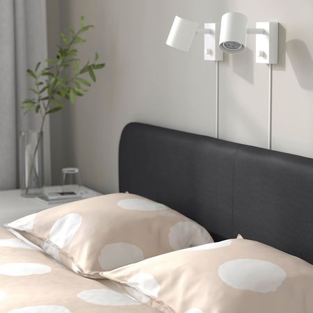 Изножье/Изголовье: ДВП, ДСП, Сотовидный бумажный наполнитель (100 % переработанного материала), Пластиковая окантовка, Акриловая краска