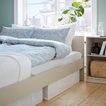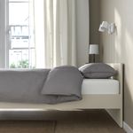 Каркас кровати ГУРСКЕН лаконичного дизайн идеально подходит для обустройства съемной квартиры или гостевой комнаты. Он прекрасно сочетается с прикроватной тумбой, комодом и гардеробом этой же серии.
