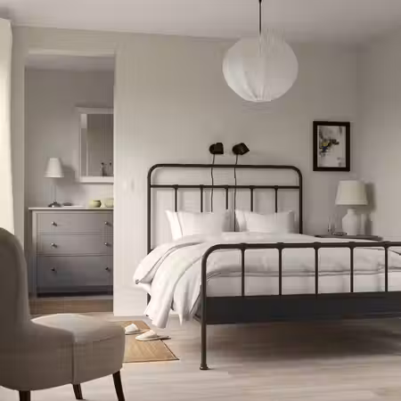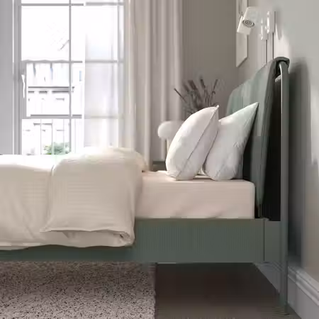 У кровати TÄLLÅSEN много продуманных деталей, которые придают спальне современный вид и прекрасно сочетаются с другой мебелью.