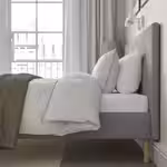 Реечное дно LURÖY с изогнутыми ламелями поддерживает тело и поглощает его вес, при этом открытая конструкция позволяет воздуху циркулировать, сохраняя матрас свежим.