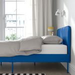 Особенности «SLATTUM СЛАТТУМ каркас кровати с обивкой, Knisa ярко-синий, 140×200 см» отмеченные производителем IKЕА:
