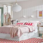 «Организация компактного хранения — это настоящее искусство. Серия функциональной мебели для спальни БРИМНЭС без труда решает проблему небольших помещений. Кровать с вместительными ящиками и изголовьем с полками для книг и журналов. Съемные полки позволят максимально эффективно использовать внутреннее пространство гардероба. Мебель можно использовать в комбинации или по отдельности. Надеемся, что благодаря мебели этой серии ваша спальня станет удобнее и функциональнее».