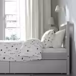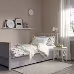 Чтобы оформить комнату в едином стиле, дополните кровать другой мебелью серии СМИГА , а также текстилем из коллекции НАТТСЛЭНДА: все эти товары идеально сочетаются между собой.