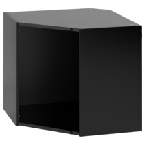 Этот шкаф хорошо вписывается в угловое пространство. При этом в нем достаточно места для больших кастрюль, сковородок и мелкой бытовой техники.