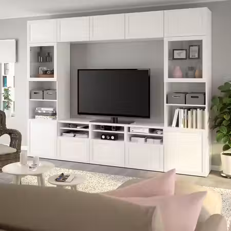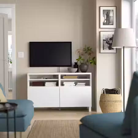 Тумба для телевизора БЕСТО может использоваться для телевизора и всех необходимых гаджетов.