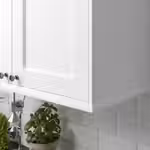 Можно использовать как декоративный карниз под навесными шкафами, чтобы спрятать подсветку, провода и розетки, а также установить на верхний край навесных и высоких шкафов.