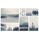 В набор входят 1 шаблон для развешивания, 6 картин 24x32 см, 2 картины 39x65 см и 1 картина 82x65 см.