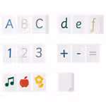 Этот набор содержит 64 карточки с цифрами, символами и строчными и прописными буквами.