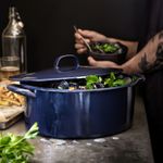Эмалированная сталь – прочный и простой в уходе материал, который быстро и равномерно распределяет тепло, что позволяет легко контролировать температурный режим в процессе приготовления блюда.