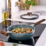 Прочное золь-гелевое керамическое антипригарное покрытие предотвращает пригорание и прилипание пищи к поверхности.