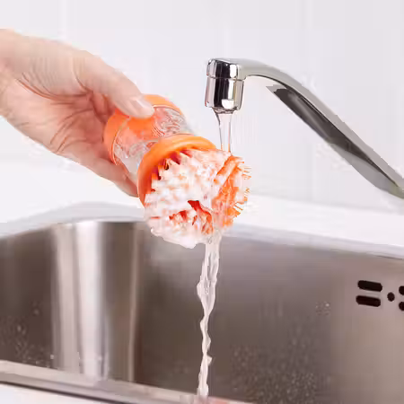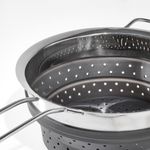 Дуршлаг изготовлен из силикона и выдерживает температуру до 220 °C.