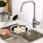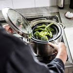 Этот дуршлаг можно разложить наполовину, если вы хотите приготовить овощи на пару прямо в кастрюле, или полностью, если вам нужна емкость побольше, например, для варки макарон.