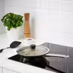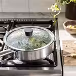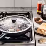 Стеклянная крышка позволяет наблюдать за процессом приготовления пищи в сковороде.