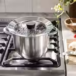 Благодаря широкому металлическому ободку крышки КЛОКРЕН подходят для кастрюль двух размеров.