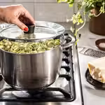 Стеклянная крышка позволяет контролировать процесс приготовления блюда.