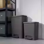 Этот пластиковый контейнер с педалью и плавно закрывающейся крышкой может служить не только вместительным контейнером для мусора.