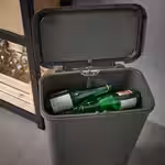 В нашем ассортименте также есть ведро с откидной крышкой КНЁККЛА меньшего размера с двумя вставками для сортировки мелкого мусора.