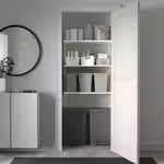 Верхняя панель из закаленного белого стекла придает решению для хранения более гармоничный вид, если оно состоит из нескольких модулей.