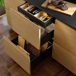 В верхнем ящике можно хранить столовые приборы и кухонные принадлежности, а остальные ящики использовать для кастрюль и сковород.