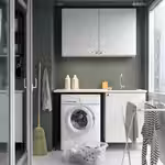 Раковина в зоне прачечной пригодится, если вы захотите постирать одежду руками, наполнить ведро или слить воду после мытья полов, а в шкафу под раковиной хватит места для хранения объемных вещей.